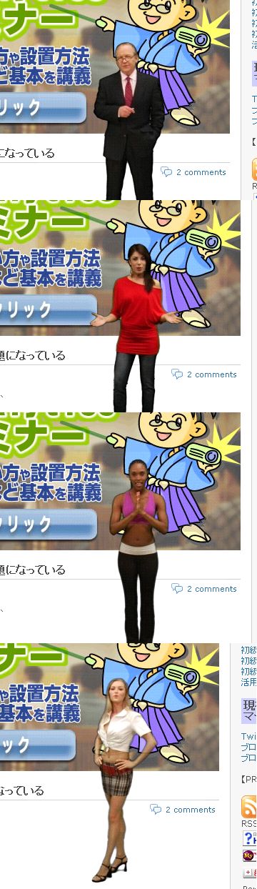 貴方のサイトに、上図のようなナビゲーターを登場させることが出来ます。