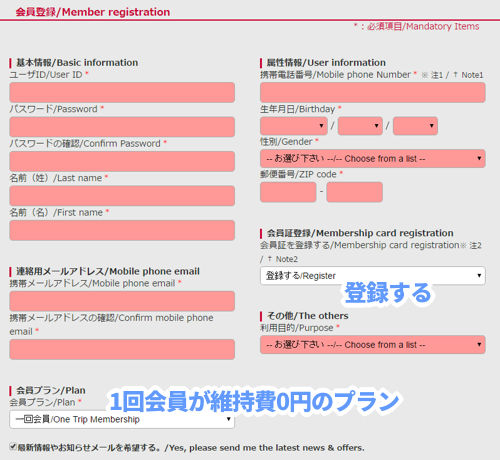 上記サイトにいき、画面左にあります「会員登録」から進みます。