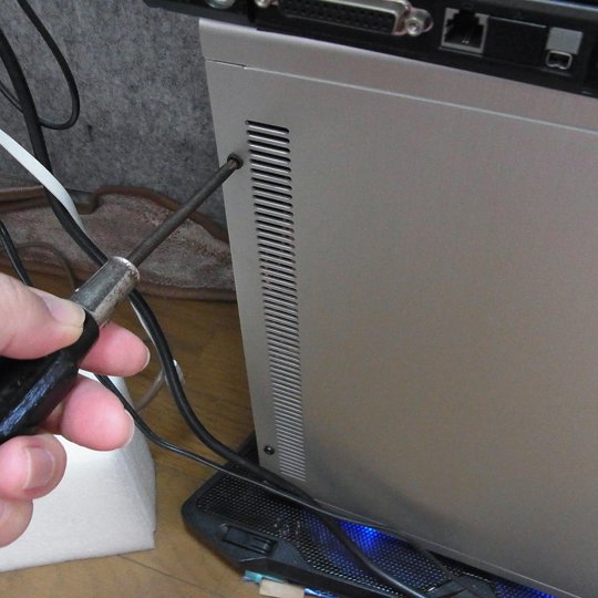 まず、PCの蓋をはずし、扇風機で風をあてて、一番冷える状態にしました。ファンも100%まで動作させます。