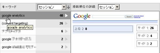 掲載順位が低くともクリック数のあるキラーフレーズは、アドワーズ入札価格を抑え、費用対効果を吟味してみるのも一考。