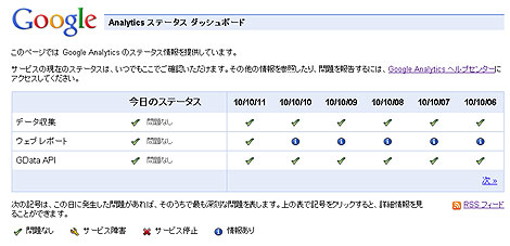Google Analytics の障害レポート、RSS取ってると、ちゃんと 日本語でお知らせ来るんだ。すごいな。
