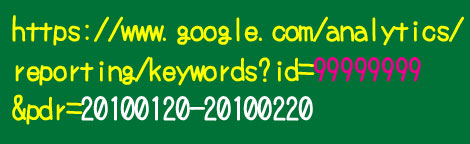 ちなみに、Google Analytics レポート画面のURLはこうなってます。