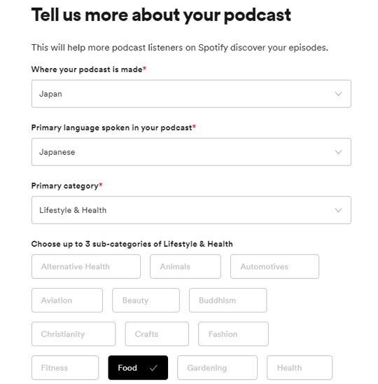 >>Spotifyにポッドキャストを登録するときの全134カテゴリー一覧