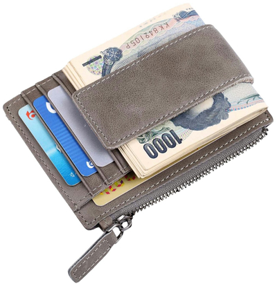 Le sourire 出来るビジネスマンのための【薄くて軽い本革 レザー マネークリップ】オン・オフ使える機能性の高さ(グレー) | マネークリップ