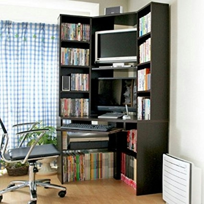 L字タイプでもコーナーに三角板がついて、引き出しも付属するタイプ。Amazonでも人気です。