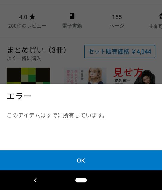 スマホのGooglePLAYブックスで注文すると「すでに持っています」と表示されます。ええええええ。