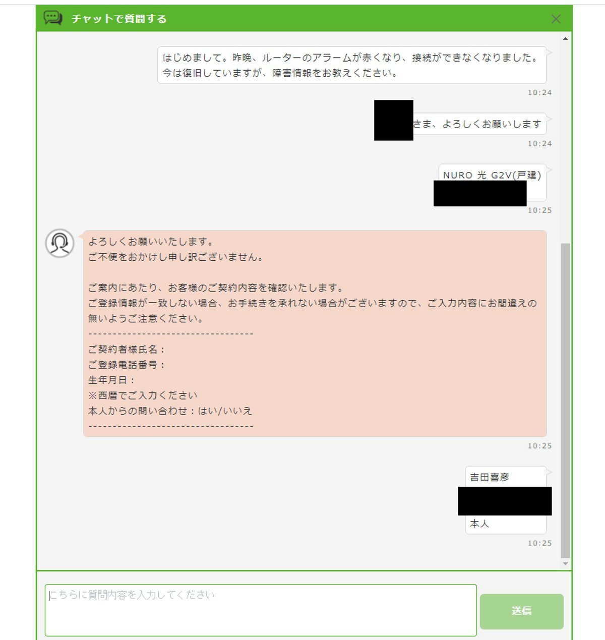 各回線事業者と書かれていて、上流回線の障害を調べるような雰囲気をかもしだしていますが、NURO光でわたしの契約の場合、とくに上流というのは存在しないそうです。
