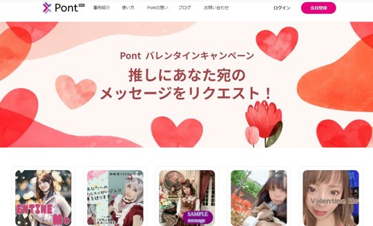 それでは、国内の動画メッセージ・リクエストサービスをみてみましょう。まずは、Pontからです。