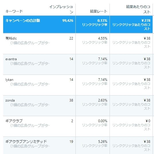 今回、ターゲティングもしてみましたので、データを見てみます。