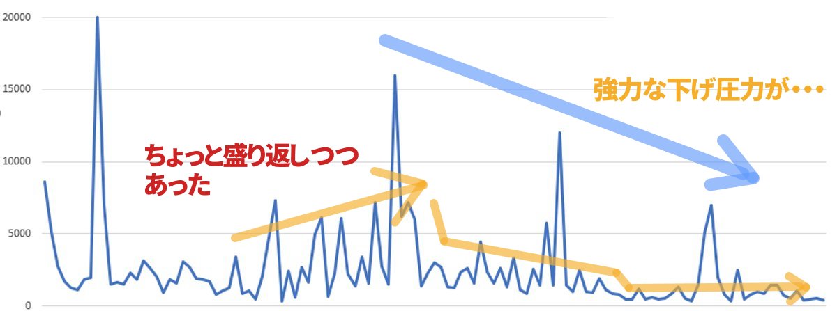 下げトレンドの渦中にいる私としては、ネガティブな理由はいくらでも思いつきます。そして、そもそも、わたしの動画がつまらない、編集が退屈だ、そもそもトレンドをつかめていない、など本質的なことも十分にあるでしょう。それはじゅうじゅう承知しています。