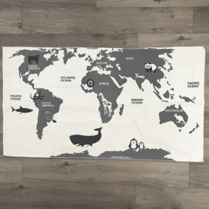 ただ、ある程度無難なデザインはどれも売り切れ。「世界地図 ポスター」「世界地図 タペストリー」などで検索してみつけて、購入したのはこちら。